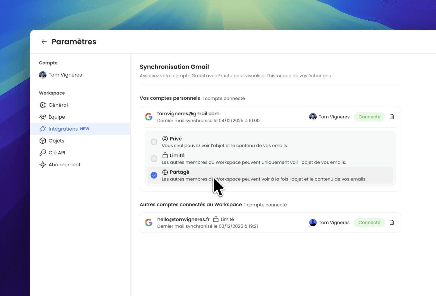 L'intégration avec Gmail est enfin disponible sur Fructu.