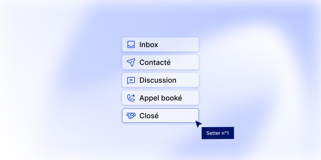 👉 Inbox, Contacté, Discussion, Appel booké, Closé